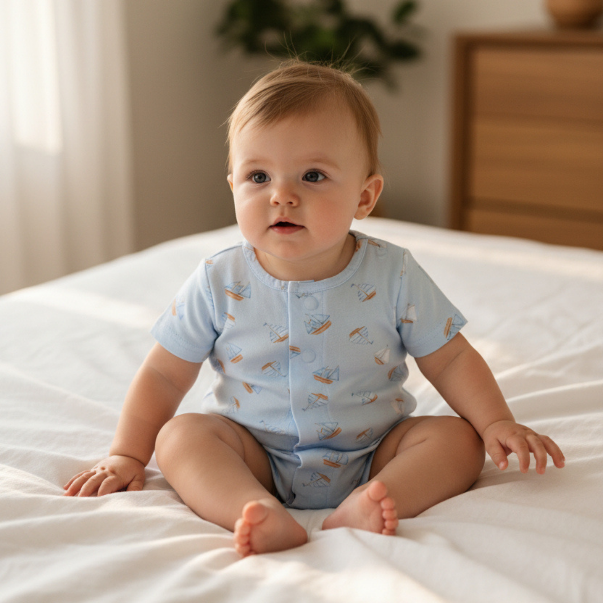Everyday comfort made easy. Our short sleeve magnetic romper is crafted from soft, breathable cotton lycra, perfect for warmer days or indoor play. With hidden magnetic fasteners, dressing your little one takes seconds — giving you more time to enjoy the moments that matter.